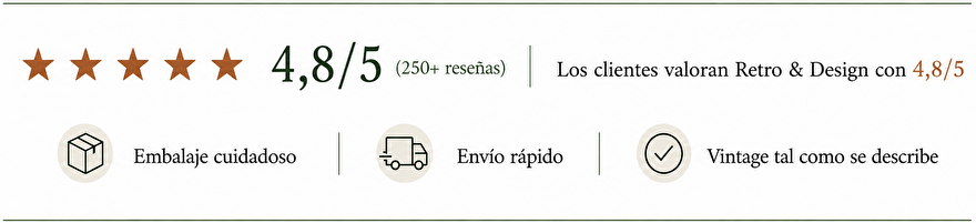 Descubre una cuidada colección de diseño vintage y retro. Desde nostálgicas latas y vajilla hasta juguetes, Tupperware y curiosidades únicas: cada pieza es única y está cuidadosamente fotografiada y descrita.