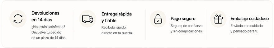 Embalaje cuidadoso y envío rápido | Devoluciones en 14 días | Pago seguro