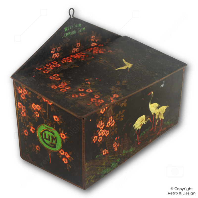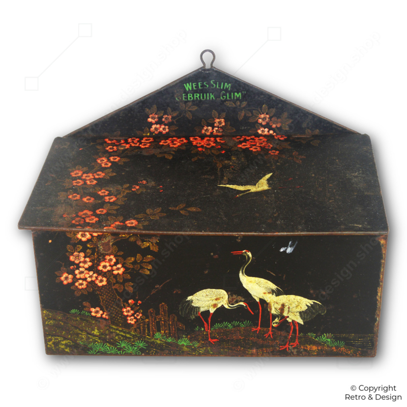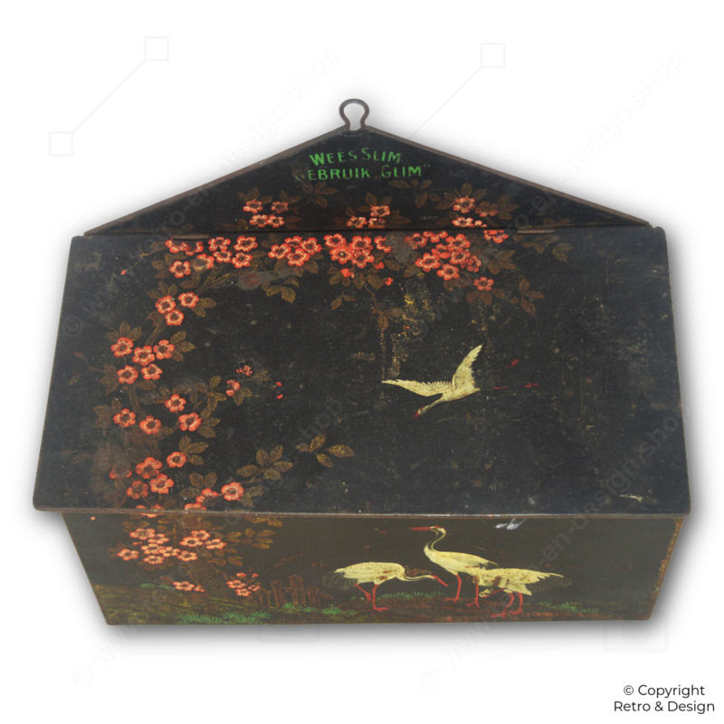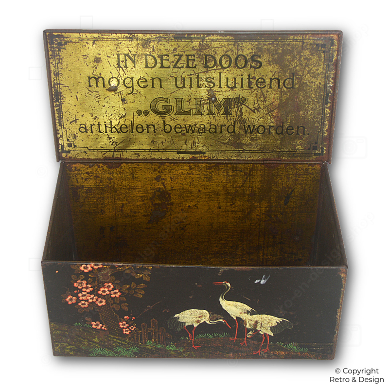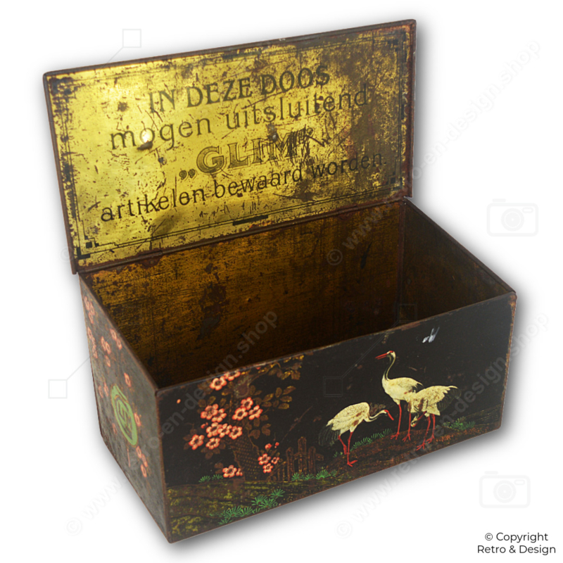 🧴 Lata Rectangular de Betún Glim con Grullas y Motivos Florales (1920–1935)
