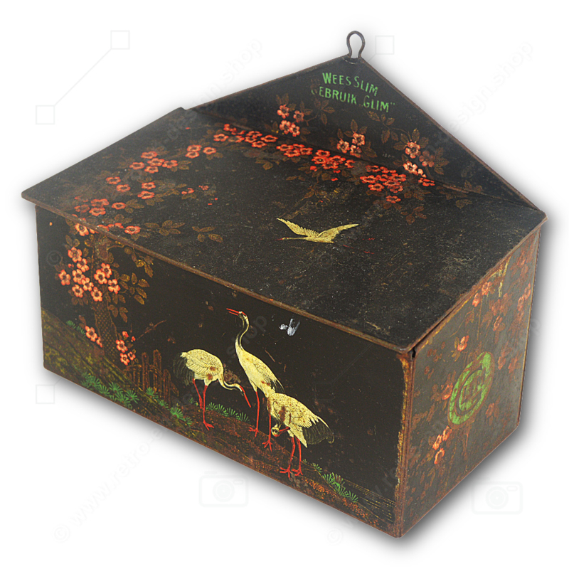 Una pieza llamativa y muy buscada por coleccionistas de publicidad vintage, latas antiguas y diseño industrial neerlandés temprano.