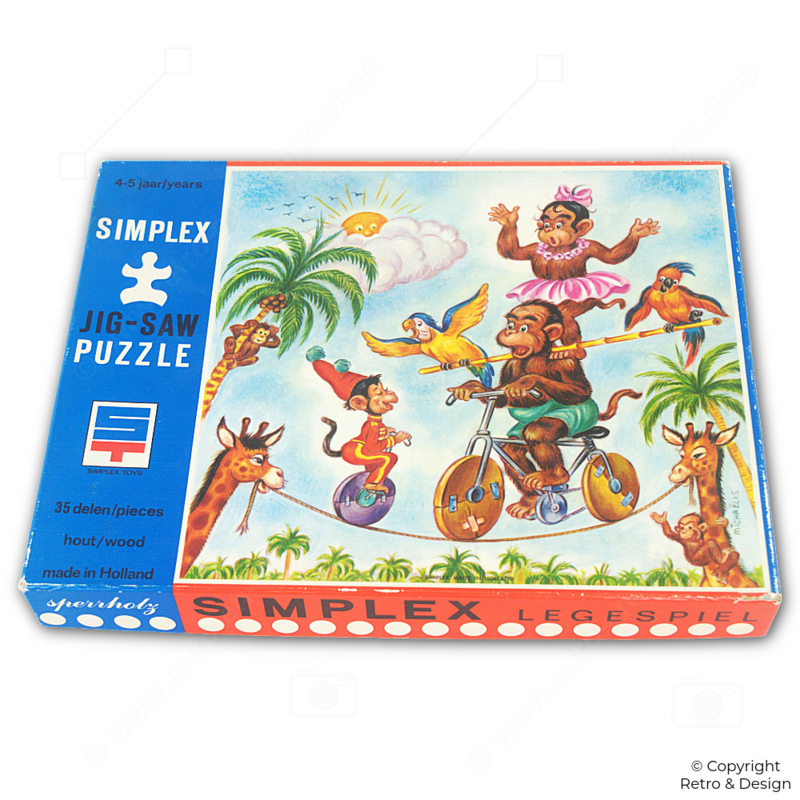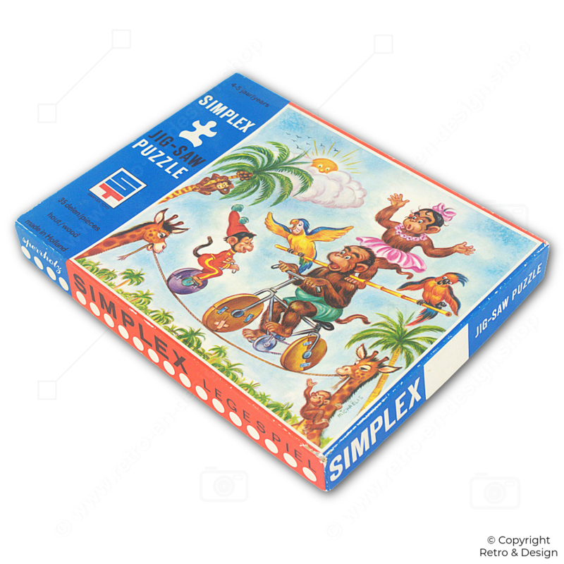 SKU: SP-5489-26🐒 Puzzle Vintage Simplex – Monos en Bicicleta (Hecho en Holanda)