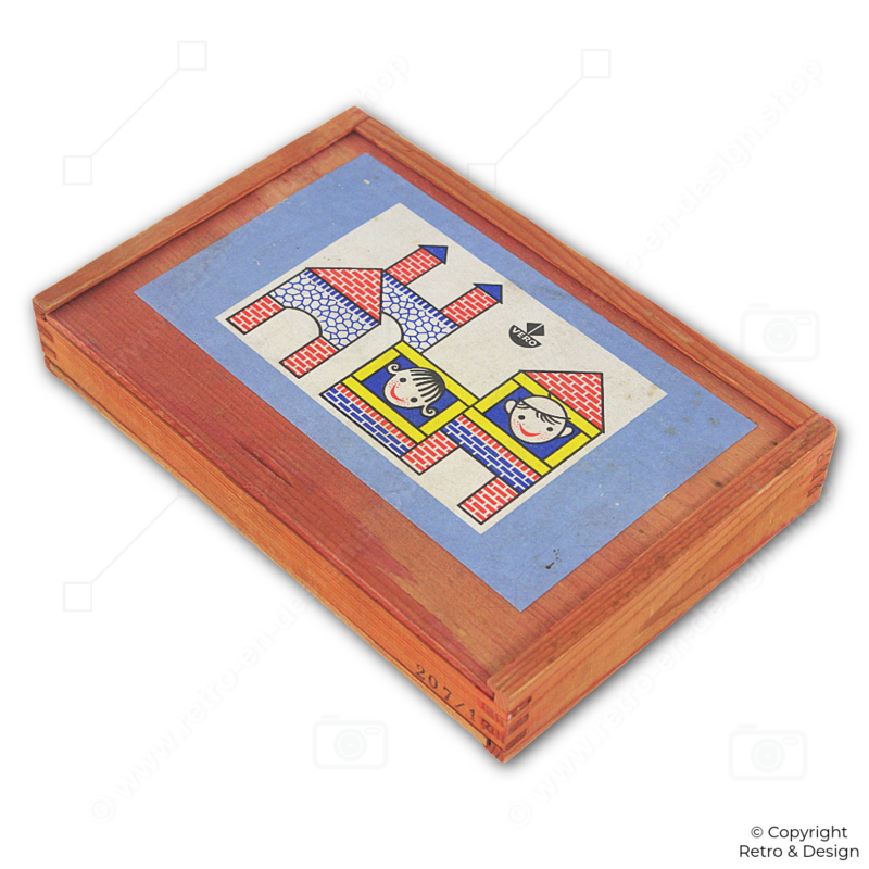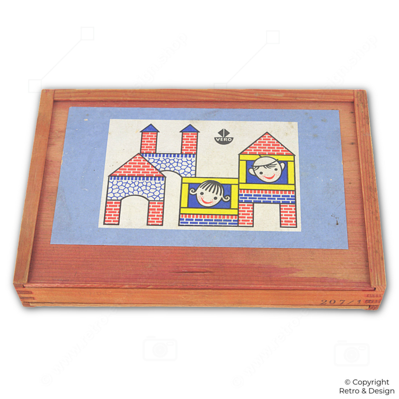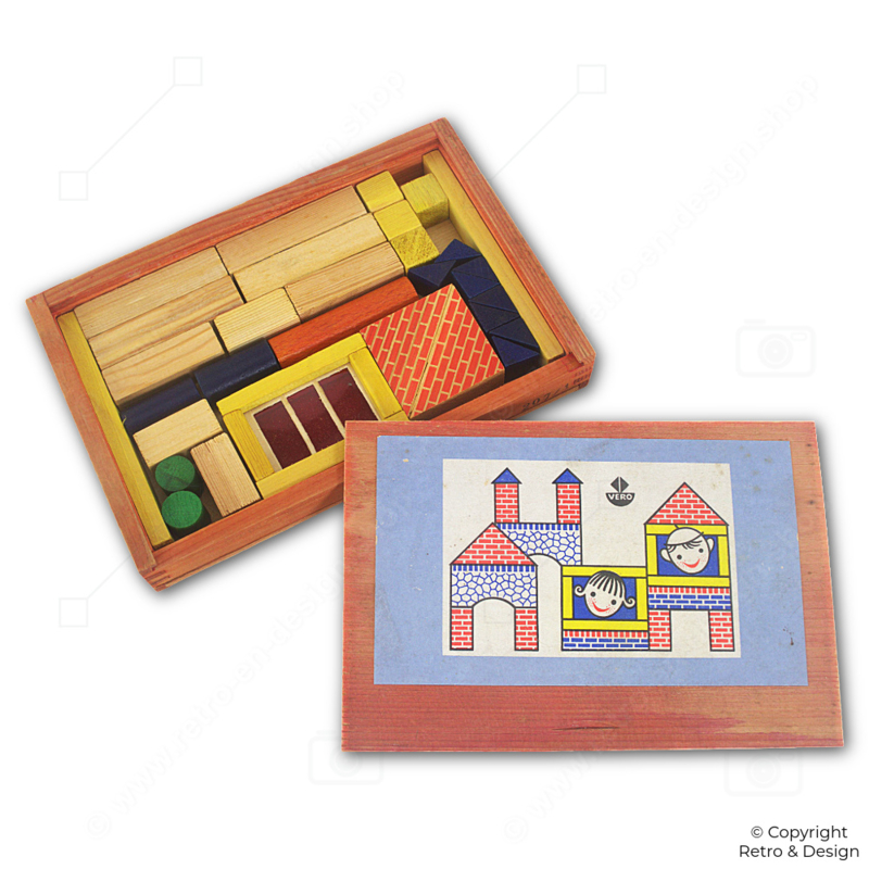 • Este set de construcción original de madera de VERO es un bello ejemplo del diseño clásico de juguetes de mediados del siglo XX.