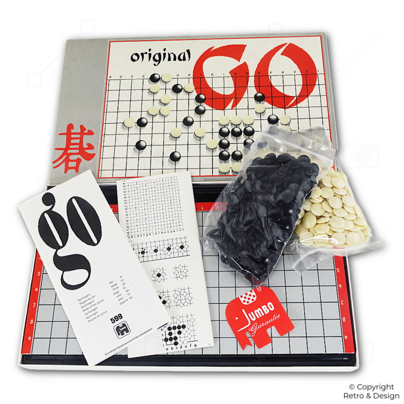 • Juego de mesa Go original de Jumbo, publicado en 1985. Un juego de estrategia clásico de origen asiático oriental para dos jugadores, basado en la visión estratégica, la paciencia y la habilidad táctica.