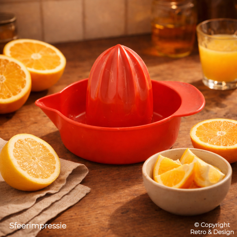 • Exprimidor manual de cítricos vintage de Emsa – años 70, en plástico rojo vibrante.