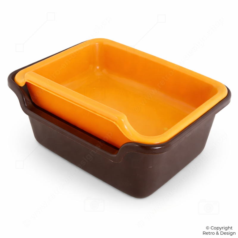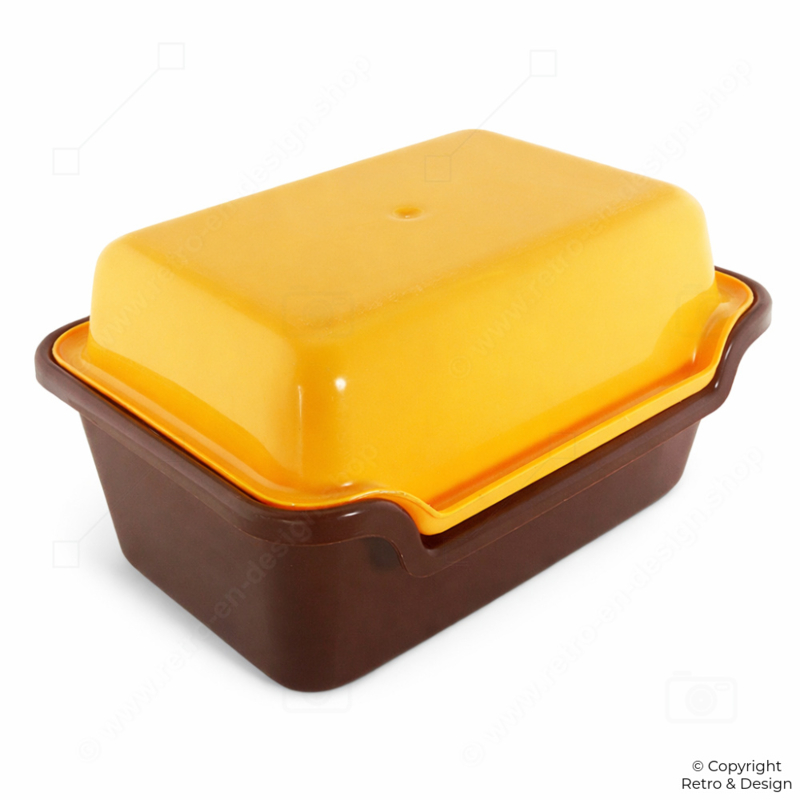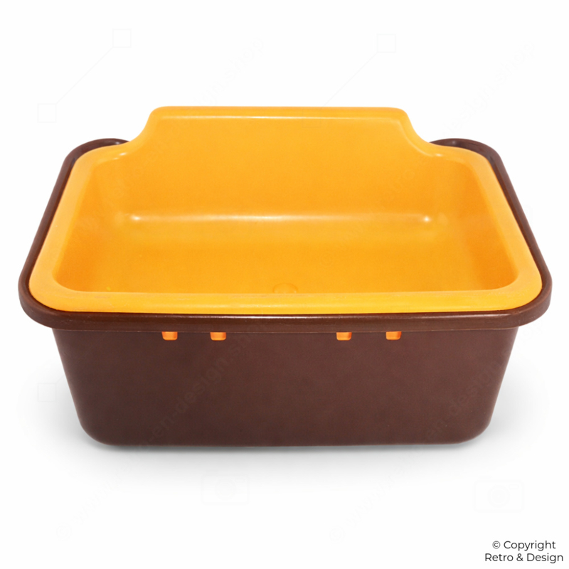 • Práctico contenedor vintage para patatas de Curver de los años 70, con la característica combinación de colores marrón y amarillo.