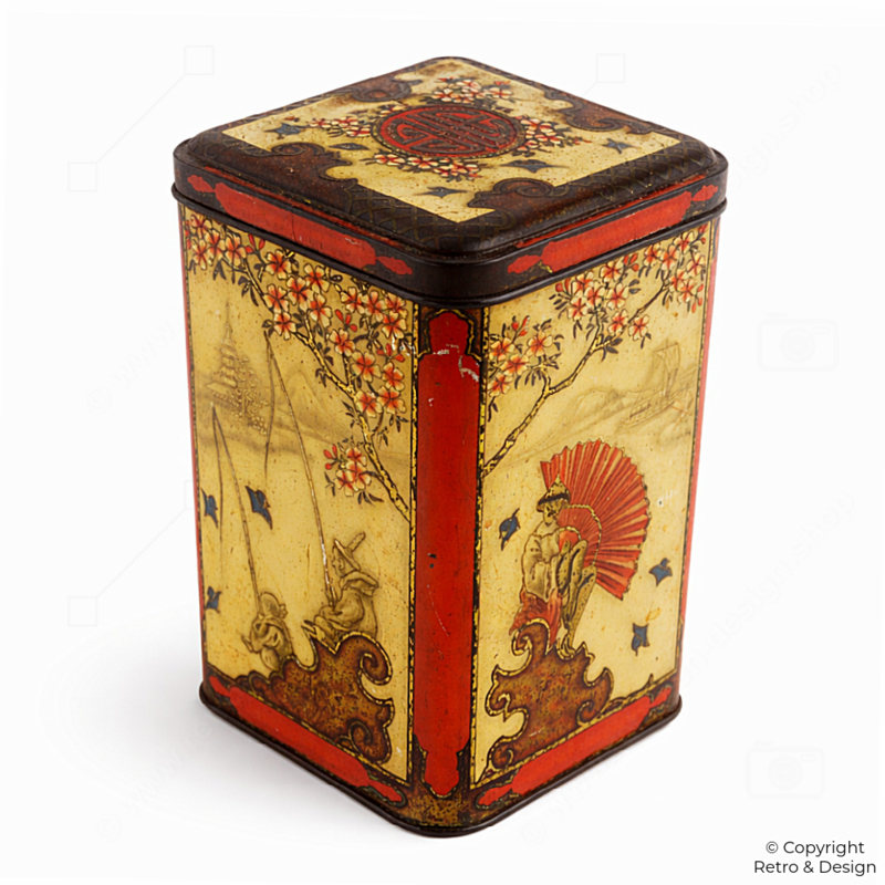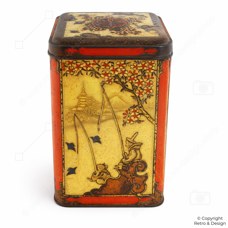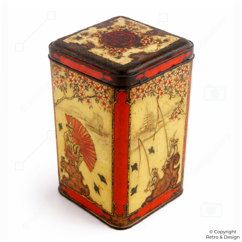 Caja de té vintage Niemeyer – decoración oriental en relieve (1959)