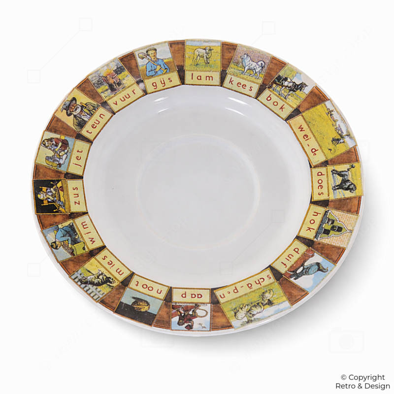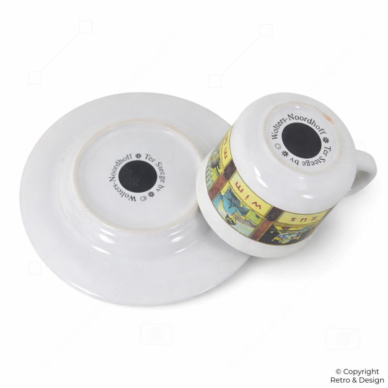 Taza y platillo “Aap Noot Mies” – Tablero de lectura neerlandés vintage – Ter Steege / Wolters Noordhoff