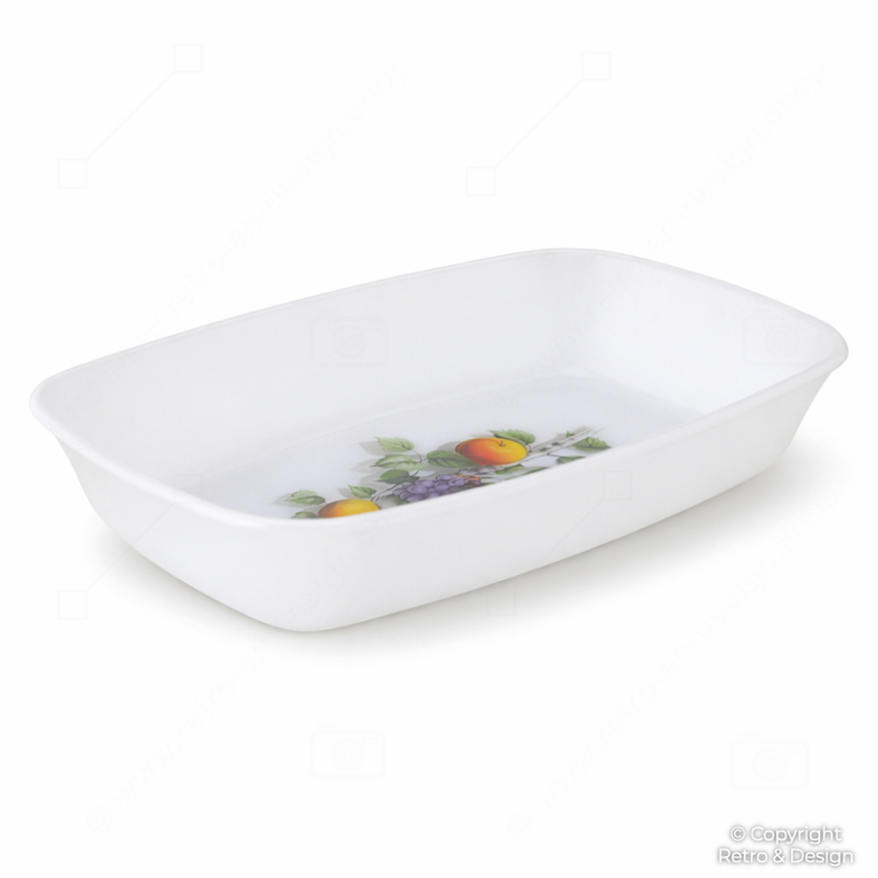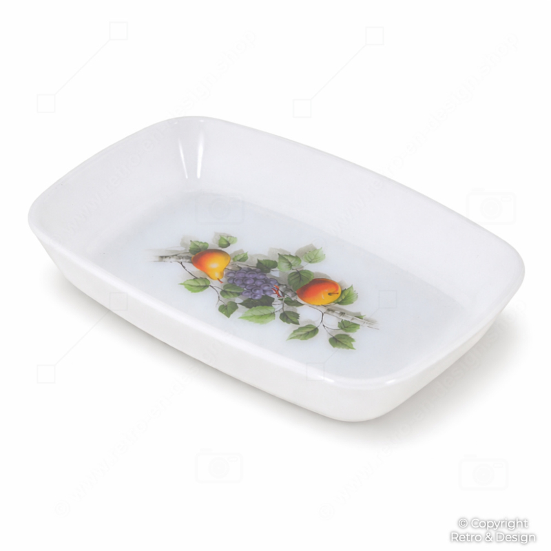Este encantador plato de la línea Fruits de France es una pieza reconocible del diseño francés de los años 60 y 70. El vidrio opal, ligero pero resistente, lo hace ideal para el uso diario, mientras que la alegre decoración de frutas aporta un toque fresco y vivo a la mesa.
