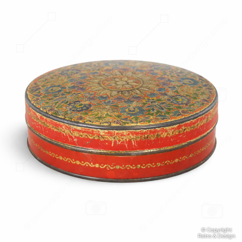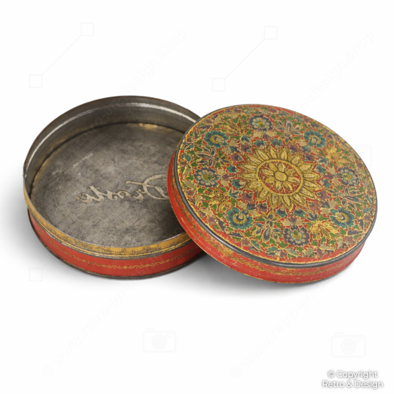 Originalmente, latas como esta se utilizaban probablemente como envase de lujo para chocolates o bombones. Hoy en día resulta ideal como caja decorativa para pequeños objetos, accesorios de costura, joyería o como pieza decorativa llamativa en un interior retro, vintage o brocante.