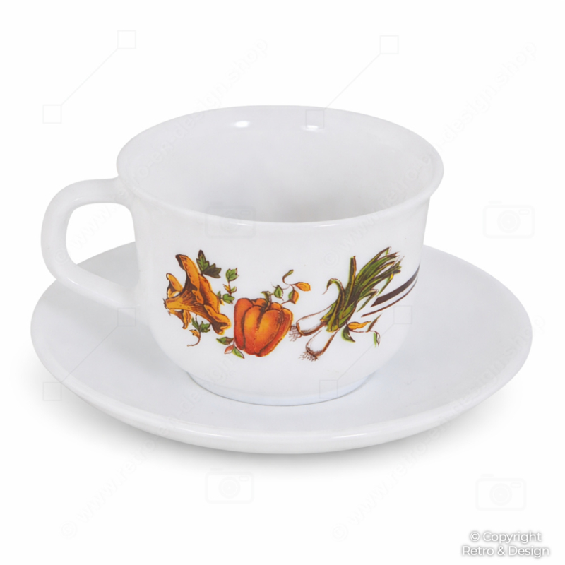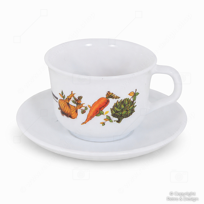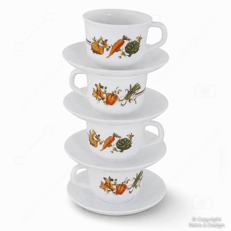 Arcopal Juego de 4 Tazas de Café con Platillos – Decorado Vegetal – Vintage Francia Años 70
