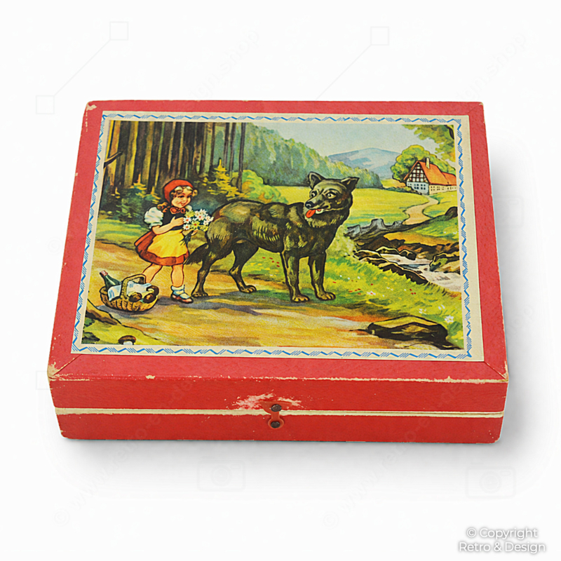 Encantador rompecabezas cúbico vintage con seis cuentos clásicos, ilustrados en colores vivos. Incluye 12 cubos de madera y la caja original.